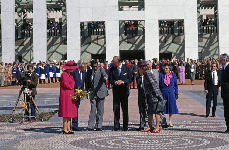 By 1973, Indigenous Australians were given a more significant role in the royal tours. Aboriginal actor Ben Blakeney, one of Bennelong’s descendants, gave the official welcome during the opening of the Sydney Opera House, and the then unknown actor David Gulpilil was among those performing a ceremonial dance.